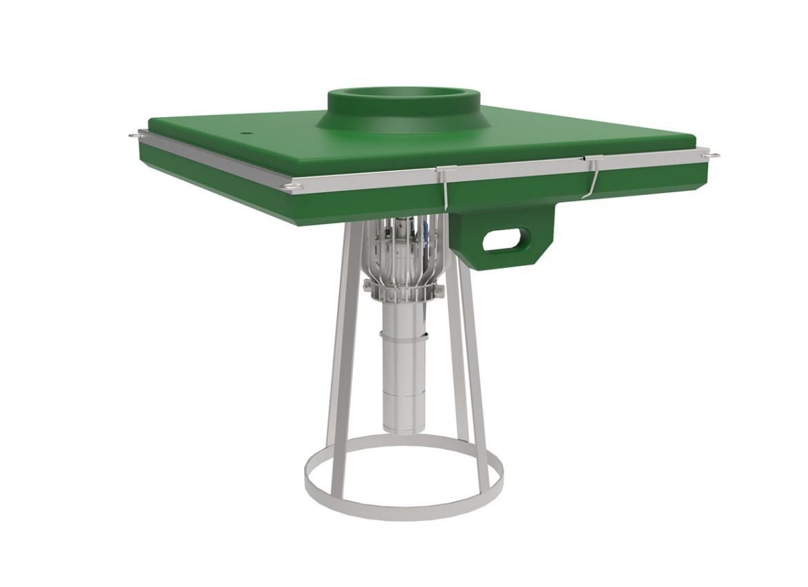 the first floating surface aerator surface aerator. Ideal for freshwater ponds with a minimum depth of 40cm, its high oxygen content in the water is 1.2 kg O2/h/kW. This aerator projects a spray of water into the air, which benefits from maximum contact with the atmosphere, enabling oxygen to be transferred from the air into the water.